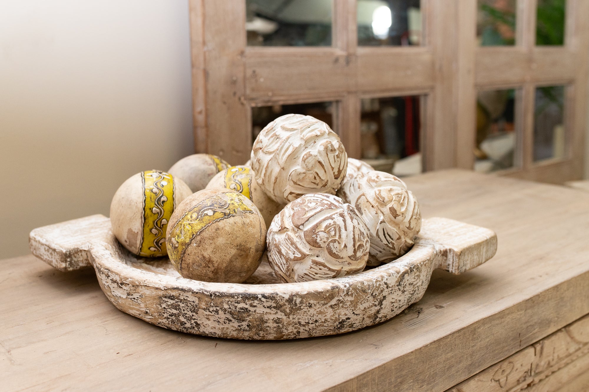 Révélez l’élégance de vos intérieurs avec la collection Bohème. Patines blanches lumineuses et bois sculpté se mêlent pour créer des meubles uniques, empreints de poésie, d’authenticité et d’un souffle nomade intemporel.